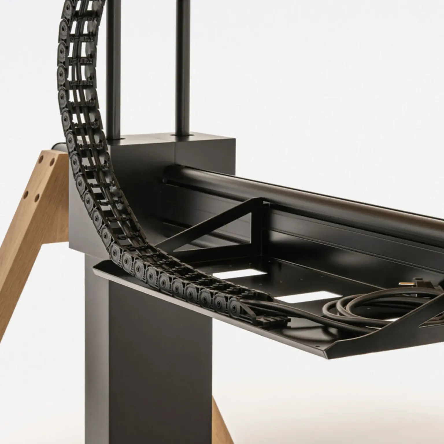 Le bureau architecte Aura assis debout électrique offre un réglage de hauteur fluide et silencieux, de 760 à 1270 mm, grâce à ses deux moteurs synchronisés et son système de protection intelligent contre les surcharges et collisions. Cette fonctionnalité permet de varier naturellement les postures durant la journée, améliorant le confort et le bien-être des utilisateurs, notamment les architectes et professionnels créatifs qui passent de longues heures au bureau.