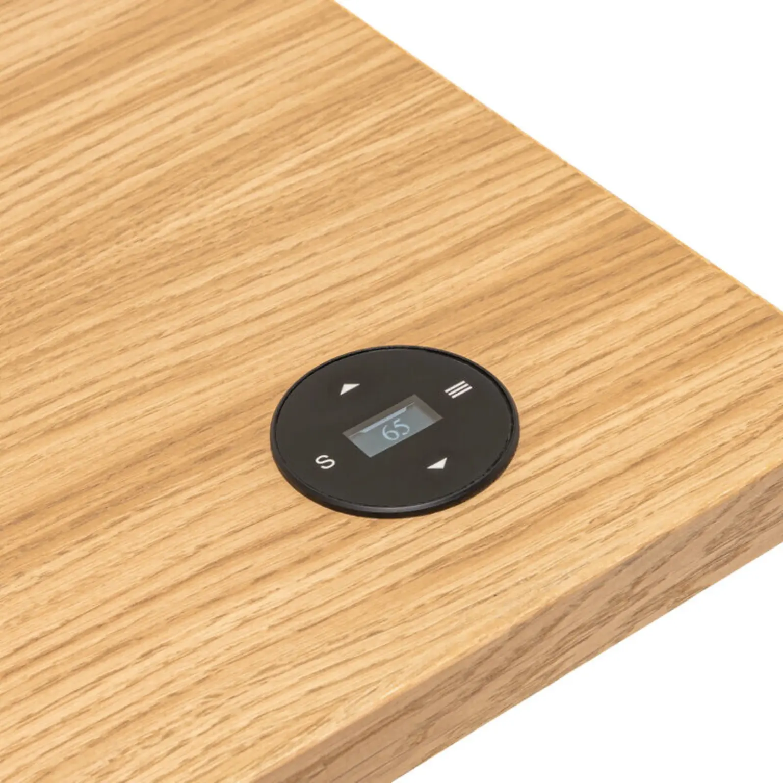 Conçu avec un plateau épais de 30 mm en placage bois naturel ou en stratifié HPL, le bureau allie robustesse et élégance. Son piétement en chêne massif (80×40 mm) apporte chaleur et authenticité tandis que la structure électrique noire mate souligne un design moderne et raffiné. Le plateau peut être choisi en différentes largeurs pour s’adapter parfaitement aux besoins d’espace.