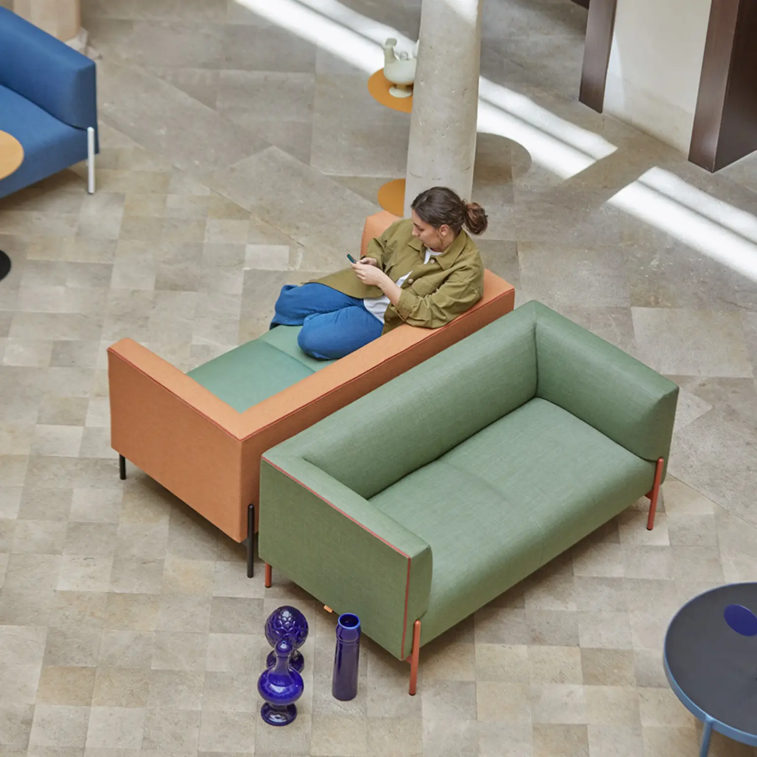 Le fauteuil lounge design architectural Amivera organise les espaces d’accueil et de détente avec une silhouette construite et accueillante. Sa structure métallique apparente affirme son caractère tandis que les coutures contrastées tracent des lignes précises qui renforcent la présence du siège dans le projet.