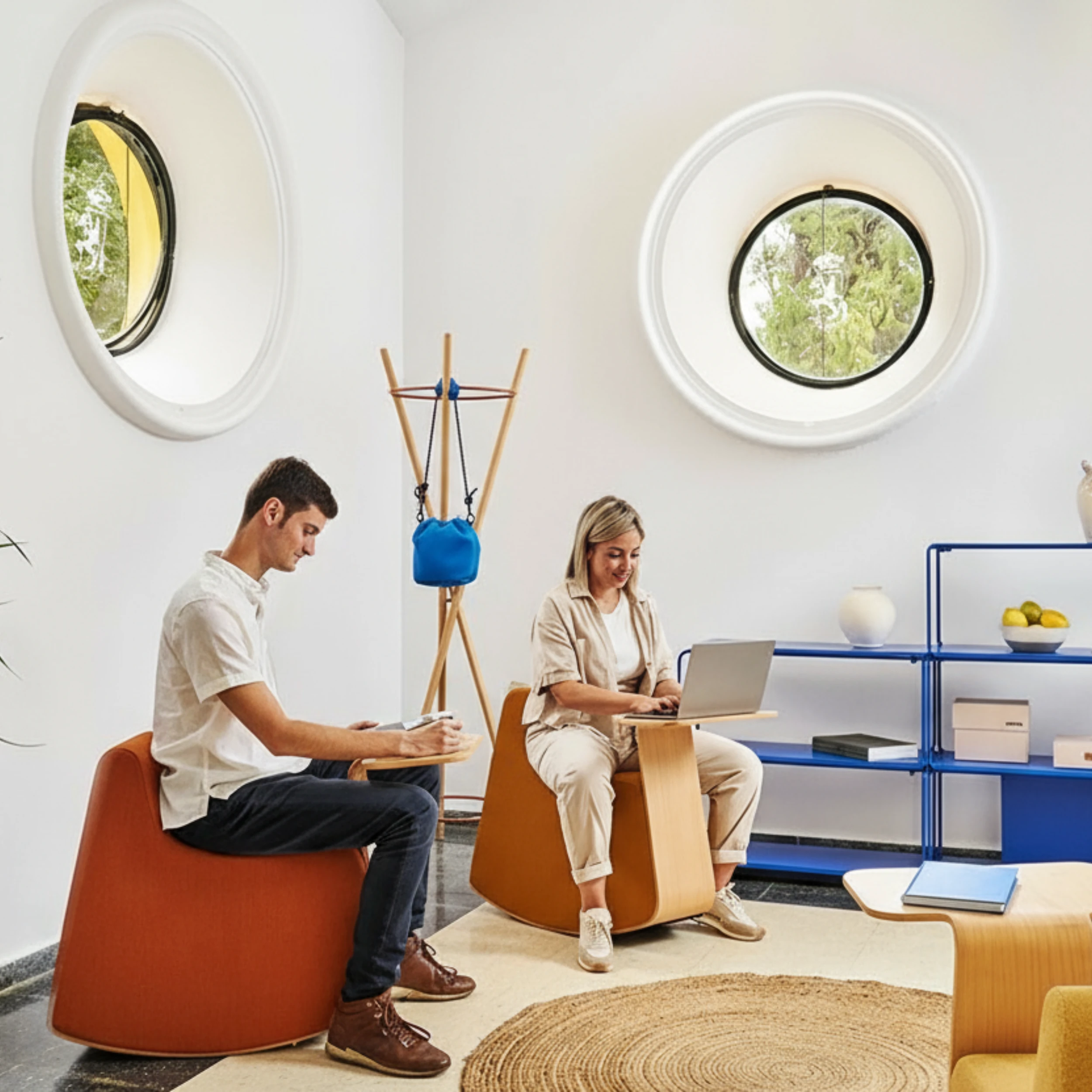 Grâce à sa base incurvée, Platero permet un léger balancement qui aide à se relaxer tout en restant concentré. C’est parfait pour les espaces modernes où on veut casser la rigidité des bureaux traditionnels.